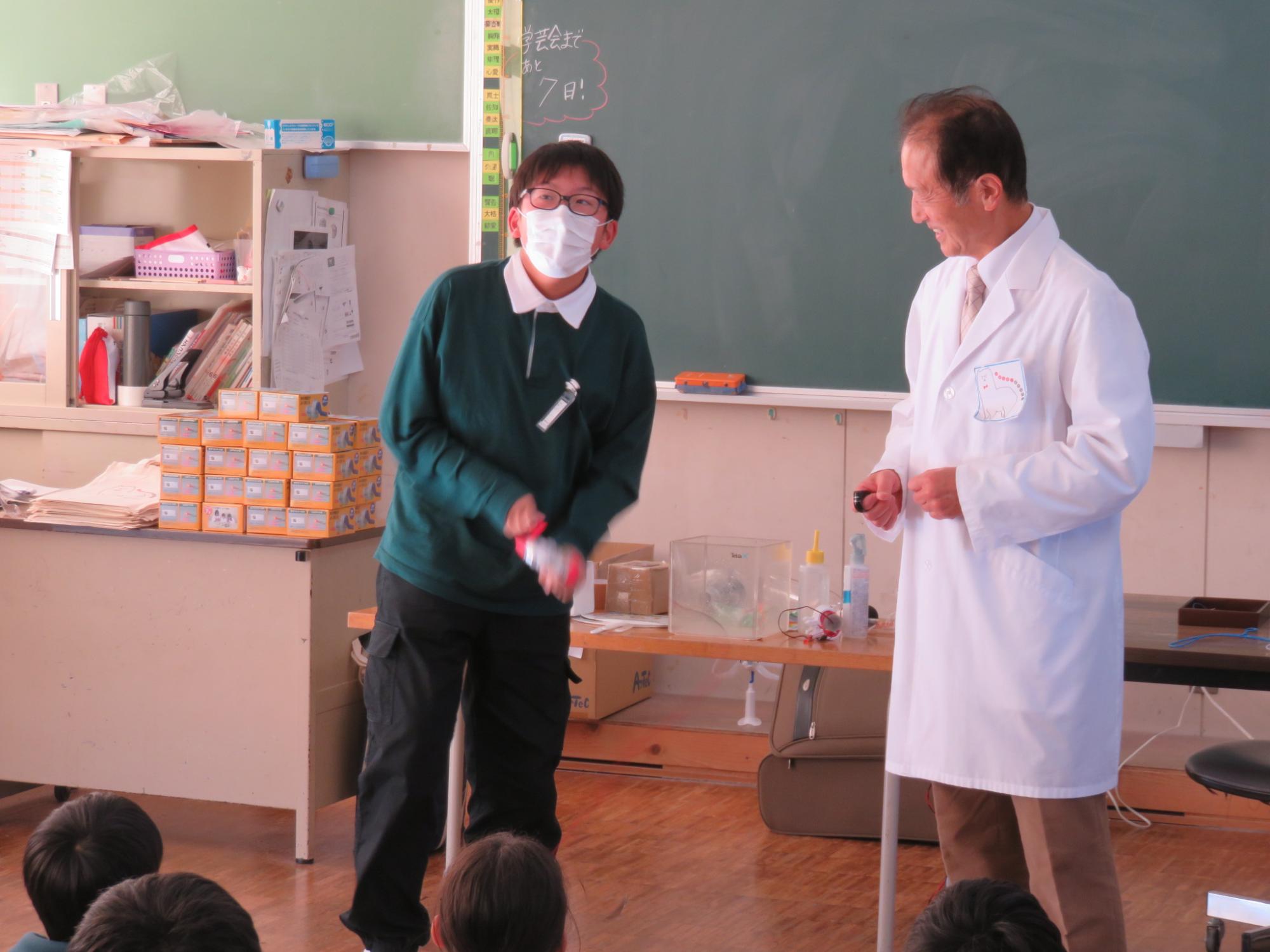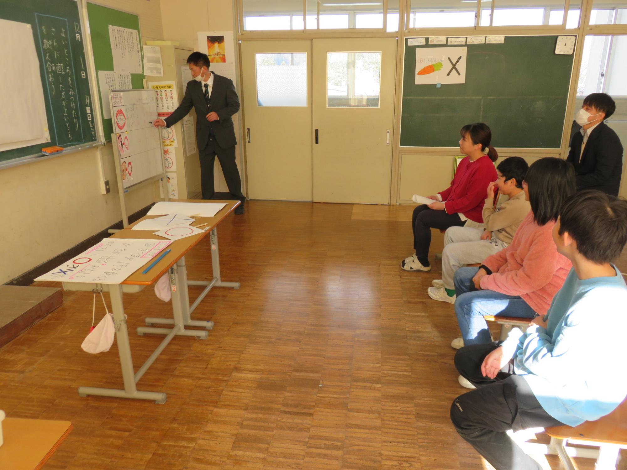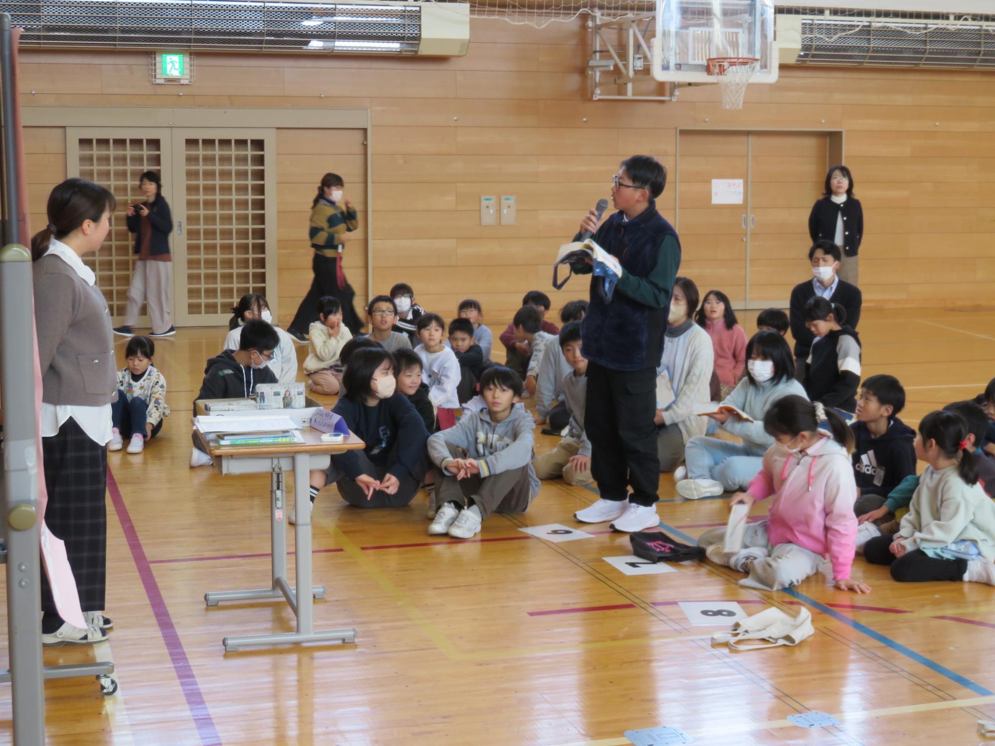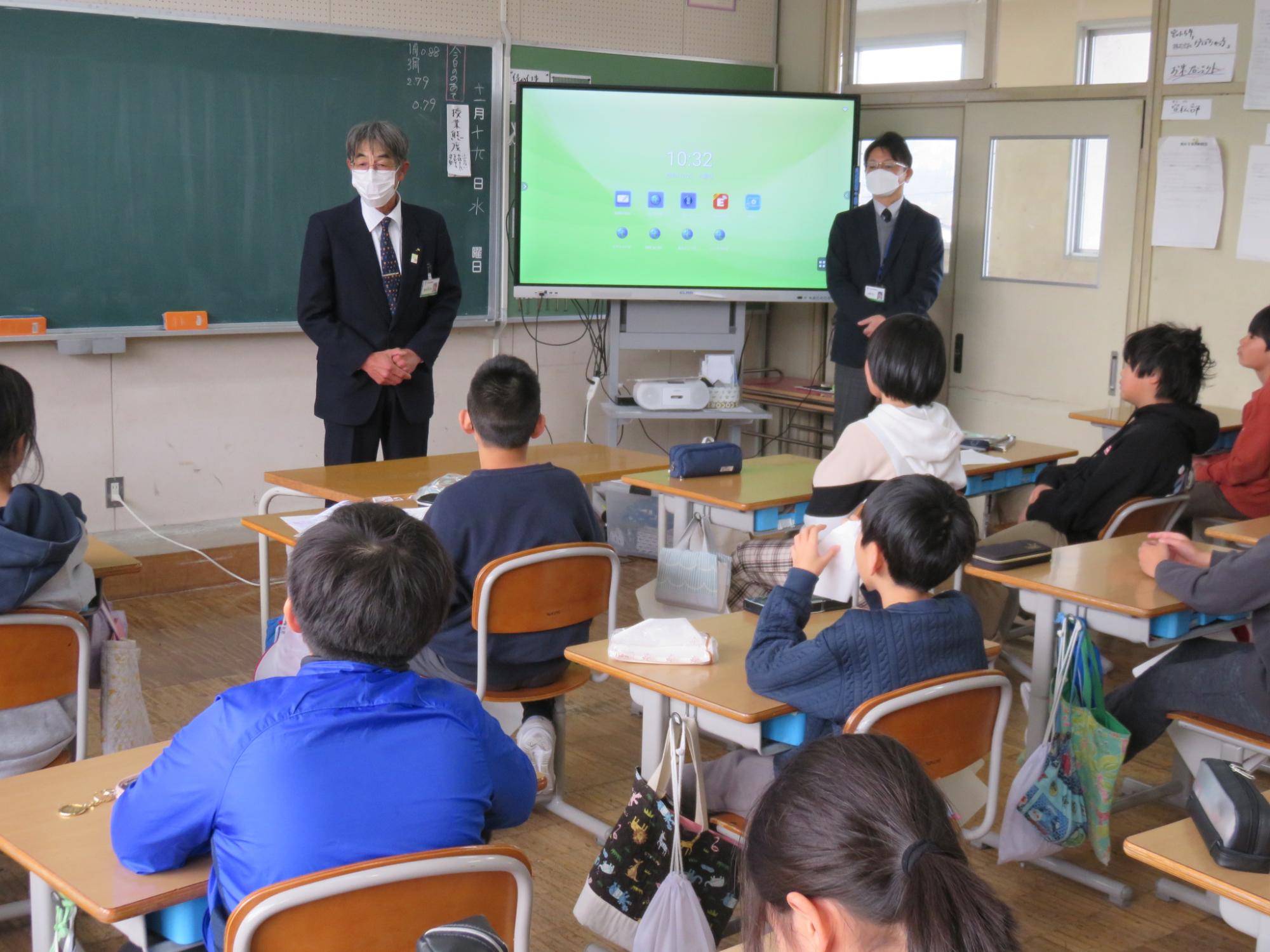 学校でみんなが使っているものには、無償のものもあれば、保護者の方たちが負担してくださっているものもあることや、施設、教材などを大切に使っていくことなどをクイズも交えながらていねいに話してくれました。