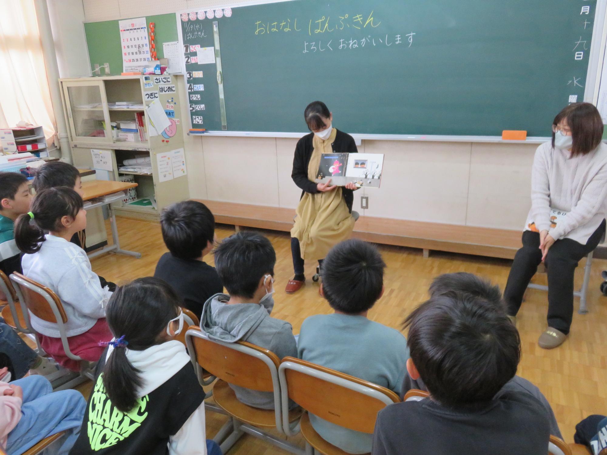 保護者の皆様によるお話会「ぱんぷきん」の第3回目が行われました。今回読んでくださった絵本は、1年生「かぼちゃスープのおふろ」、「たからものみつけた!」。2年生「まどから☆おくりもの」、「たべてあげる」。3年生「おにぎりに はいりたいやつ よっといで」、「やきざかなの のろい」でした。思わずクスっと笑ってしまうような楽しいお話もあり、子どもたちは引き込まれていました。