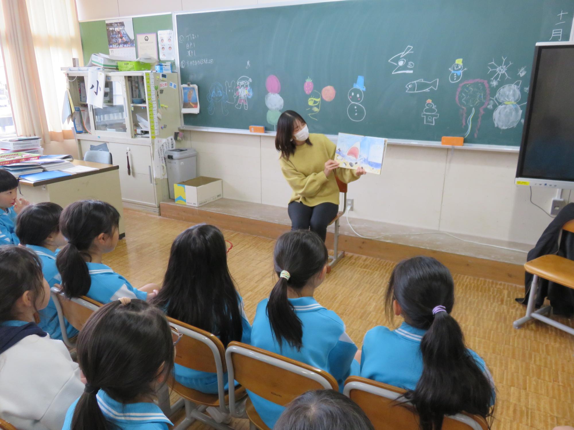 今回の語りの会は1・3・5年生です。1年生は「ありの恩がえす」、3年生は「三枚のお札」、5年生は「道円さん」というお話でした。
