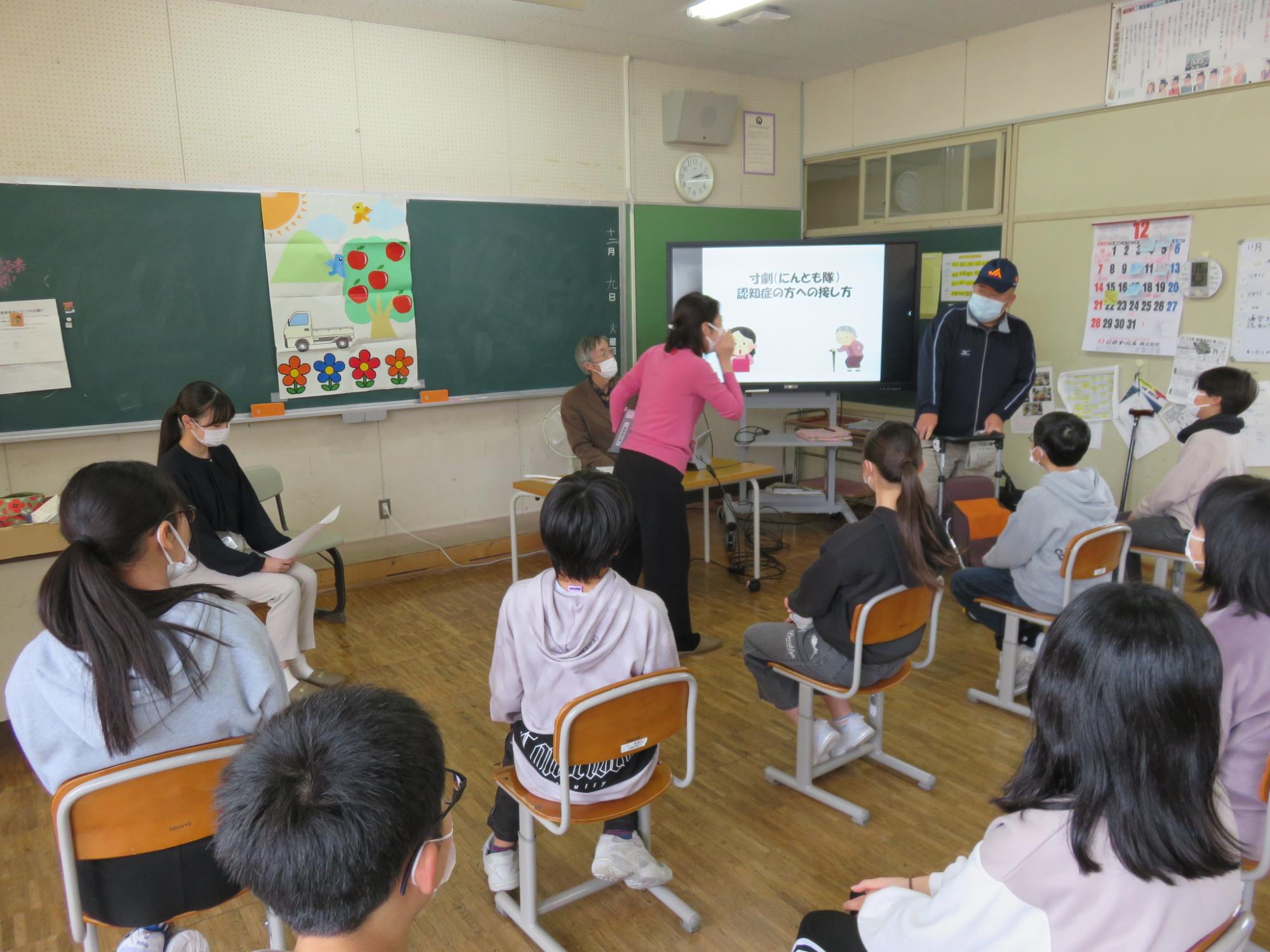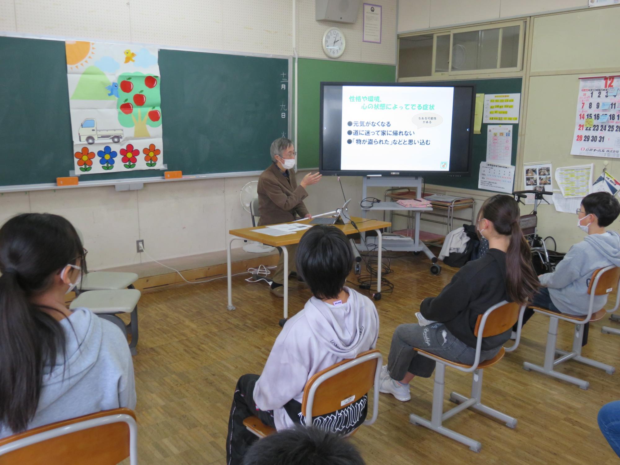 6年生が認知症サポーター講座を受講しました。認知症の症状や対応の仕方、気を付ける点などについてお話しただき、その後、寸劇を通して気づいたことやこうしたらいいんじゃないかと思うことなどをグループで話し合いました。認知症を発症したとしても、あたたかく接してくれる人が周りにいて、楽しく過ごすことができると、認知症の進行もゆっくりになるというお話がありました。うまくできないことや不安、困り感は誰だって抱えてしまうもの。相手を受け止め、あたたかく接する心、大切にしていきたいですね。