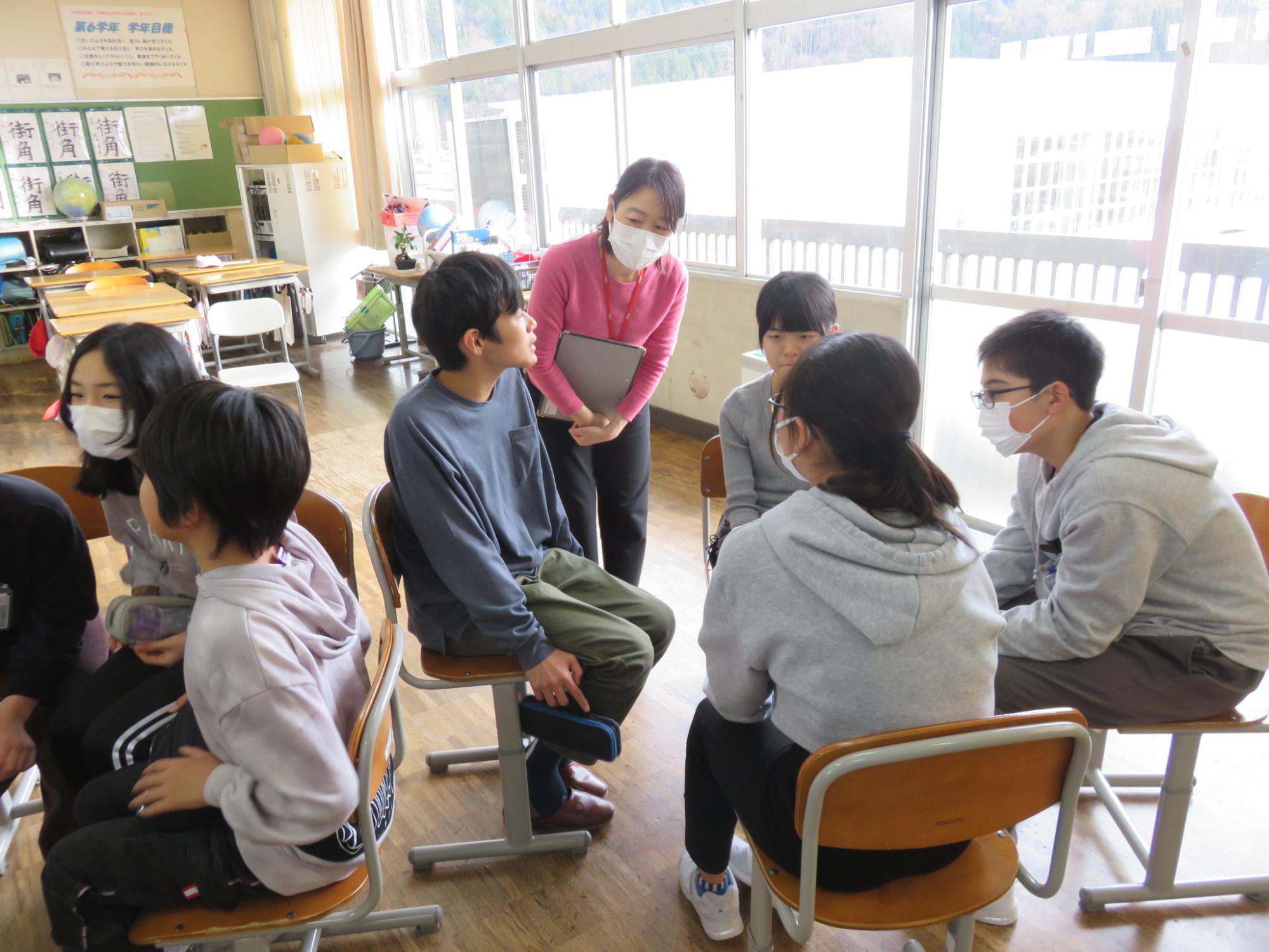 放課後には、子どもたちの学びについて話し合い、村山教育事務所と朝日町教育委員会の指導主事よりご指導をいただきました。