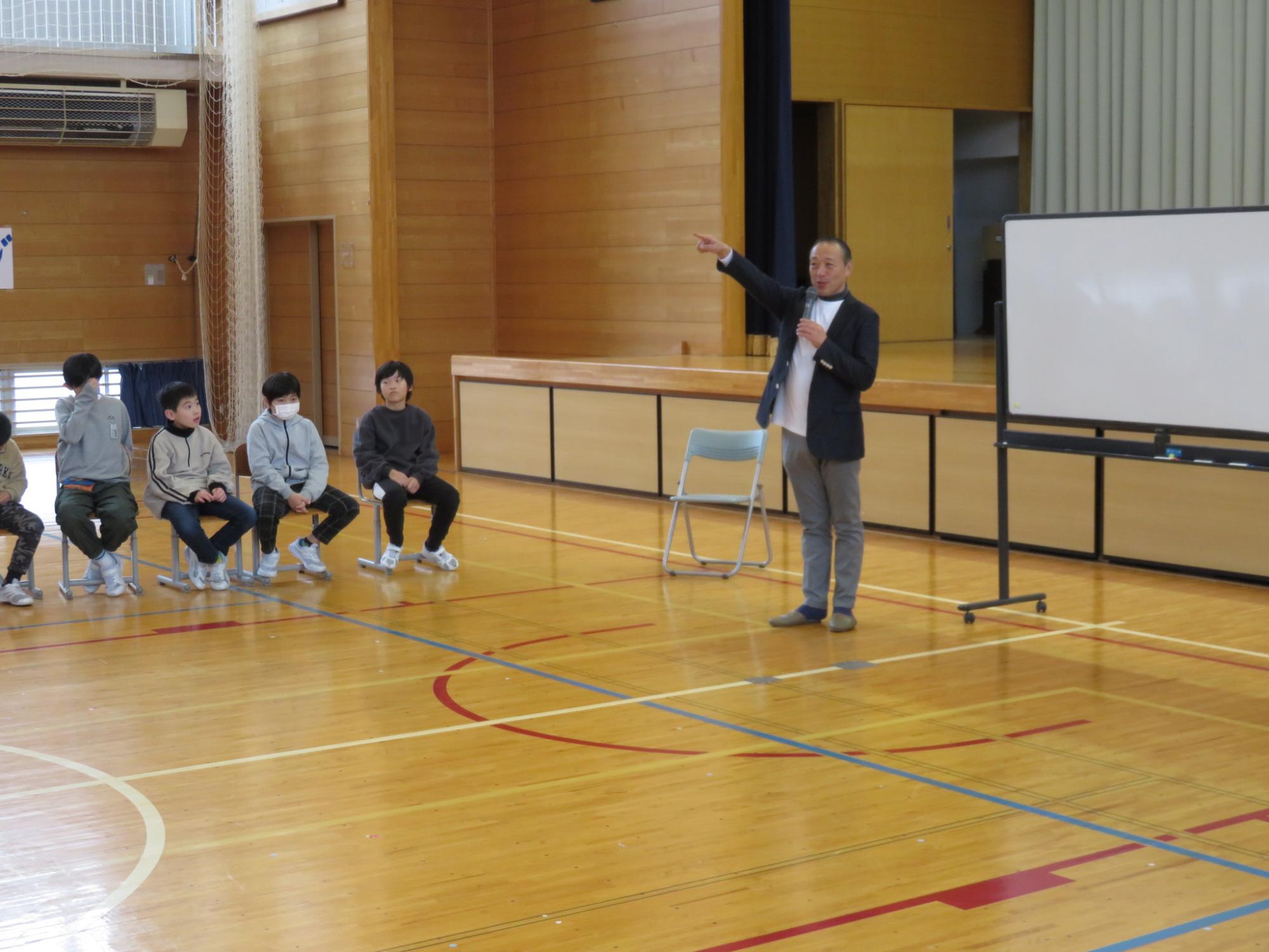 りんご温泉の支配人である松田さんを講師にお招きし、4~6年生対象の職業講話の第1回目を行いました。今回は、仕事をすること全般についてお話していただきました。世の中には無限と言っていいほど仕事の種類があることや、それをどのようにして選んでいくとよいのかのヒントになることなどをお聞きしました。