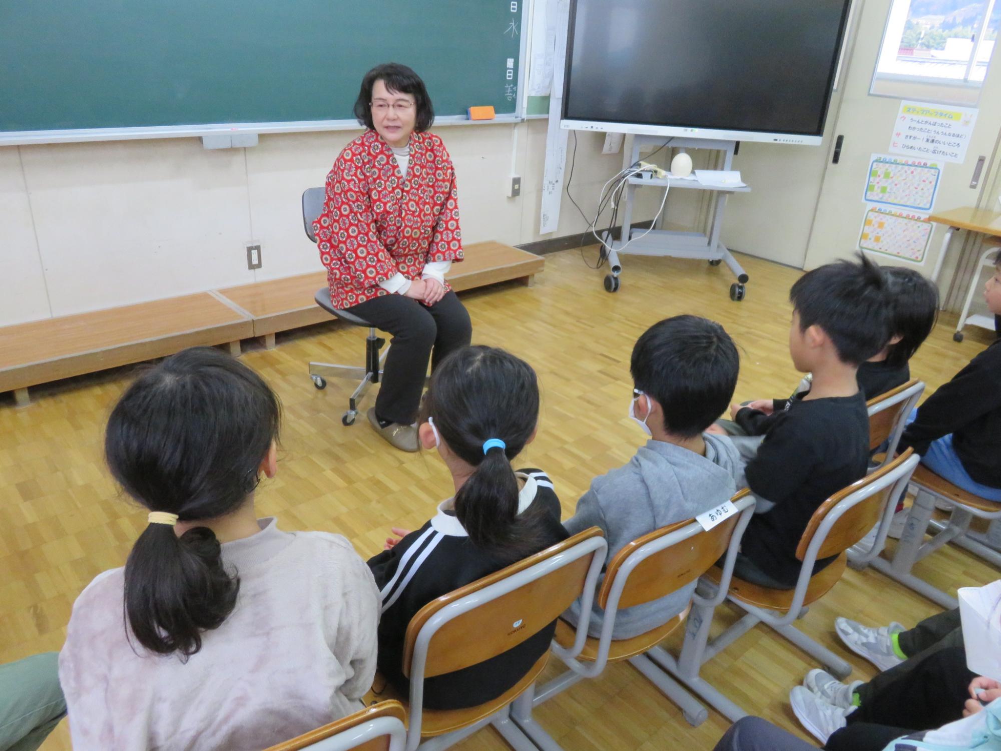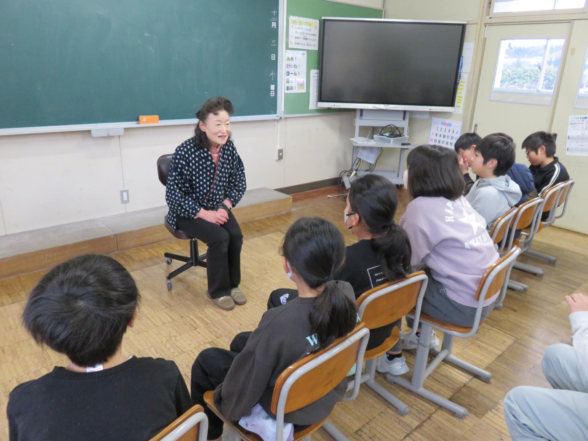 今回の語りの会は、2・4・6年生。2年生は「子育て地蔵」、4年生は「黄金沼」、6年生は「お日様とお月様になった兄弟」というお話。感想の中に、「そのお話をまた聞きたい」という声があったそうです。学年が上がってから聞くと、同じ話でも違った印象を受けるのかもしれませんね。