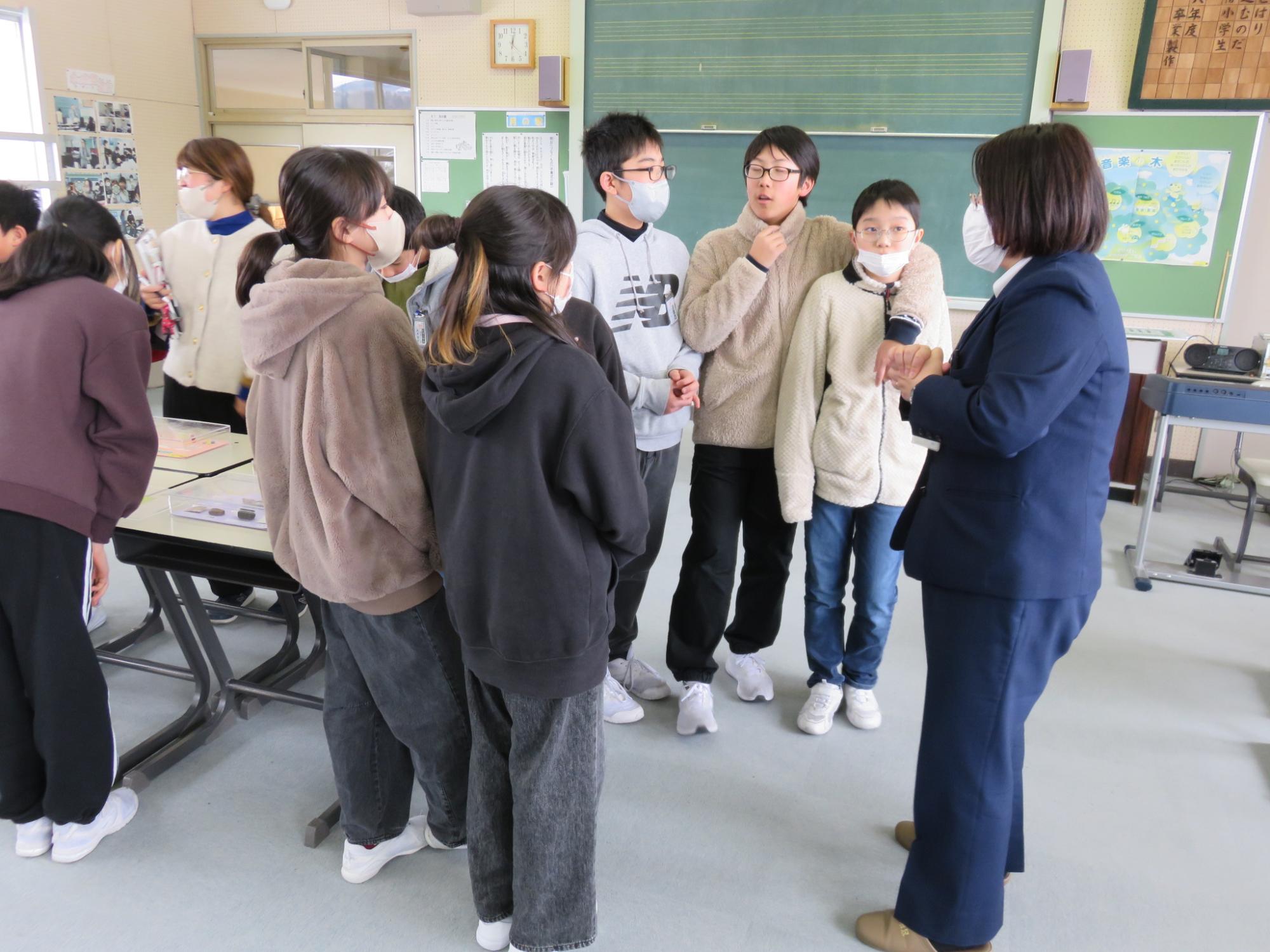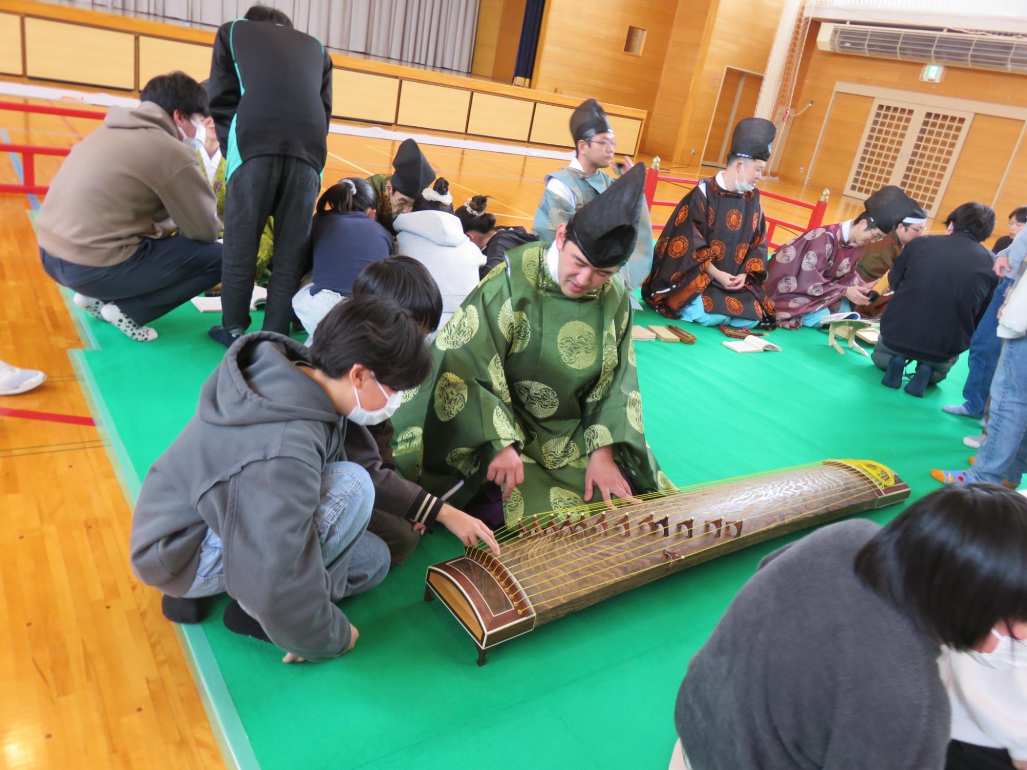 演奏の後には、楽器に触れる時間も設けていただきました。普段は間近で見ることもほとんどない楽器に触れることもできて、とても貴重な体験となりました。