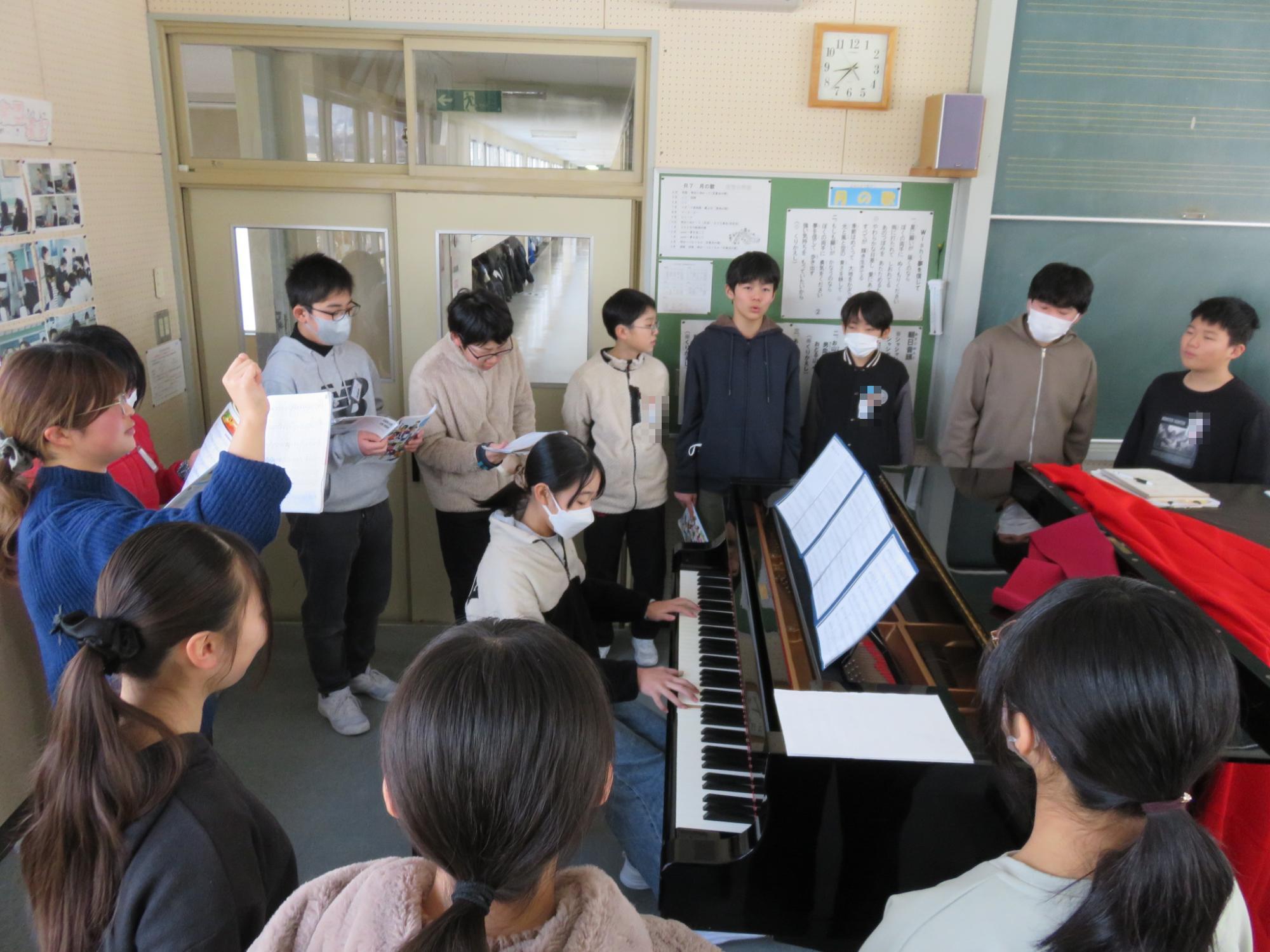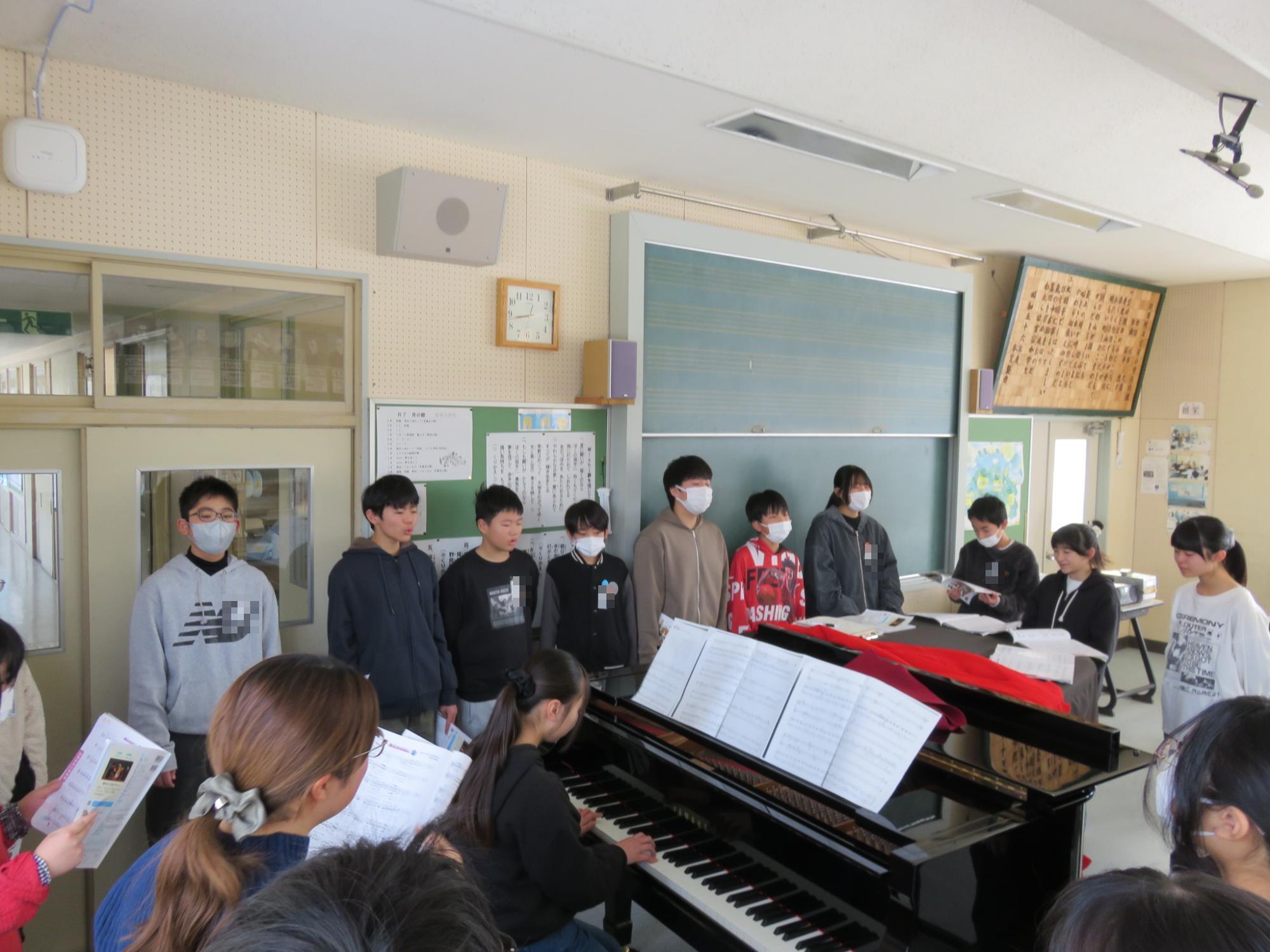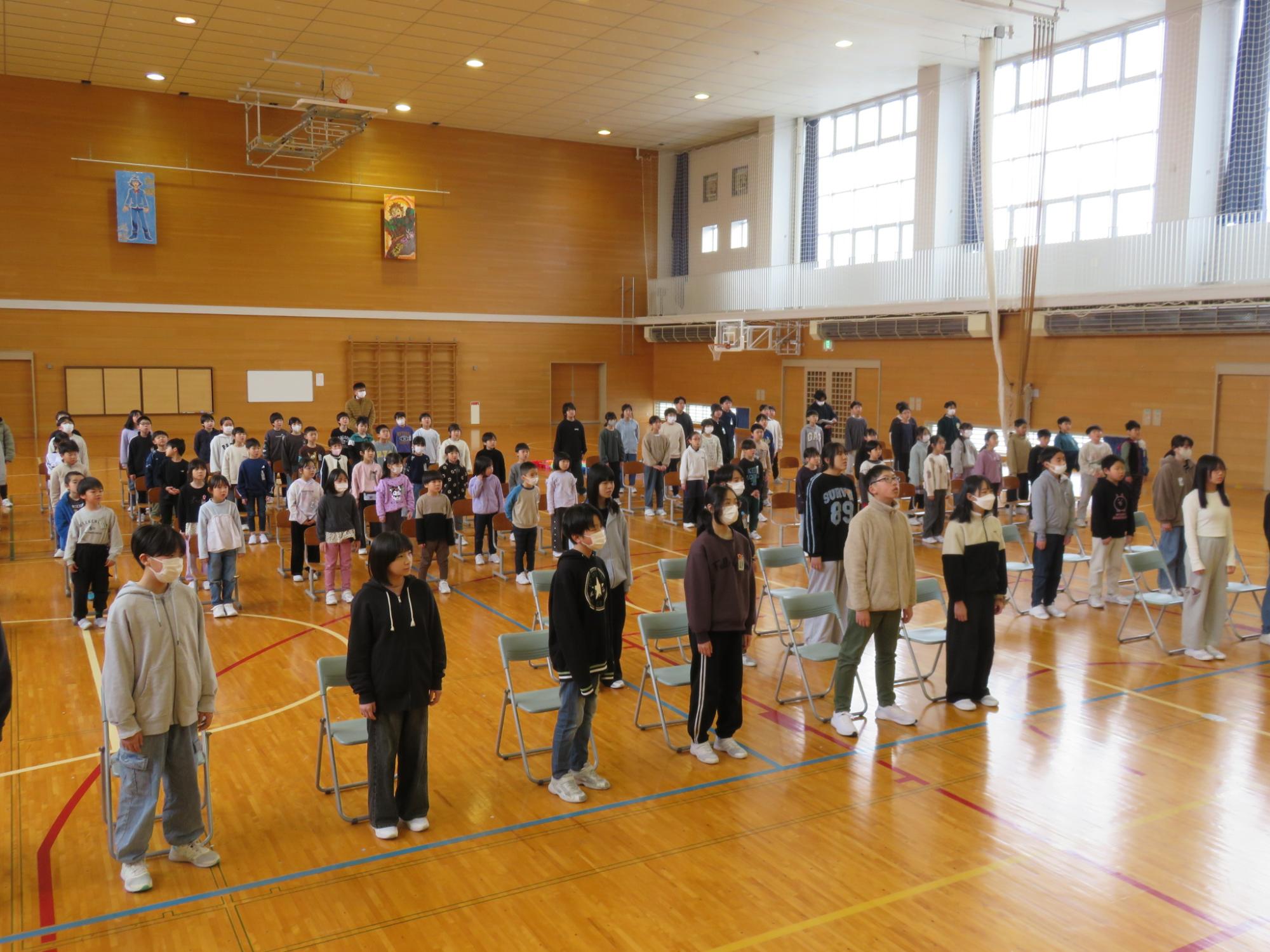卒業式まで約1か月となりました。少しずつ卒業式に向けて練習や準備が始まっていきます。この日の音楽朝会から、6年生と1~5年生に分かれて、卒業式で歌う曲の練習がスタートしました。1~5年生は体育館、6年生は音楽室でそれぞれ練習しました。卒業式当日、きっと思いのこもった歌を聴かせてくれることでしょう。
