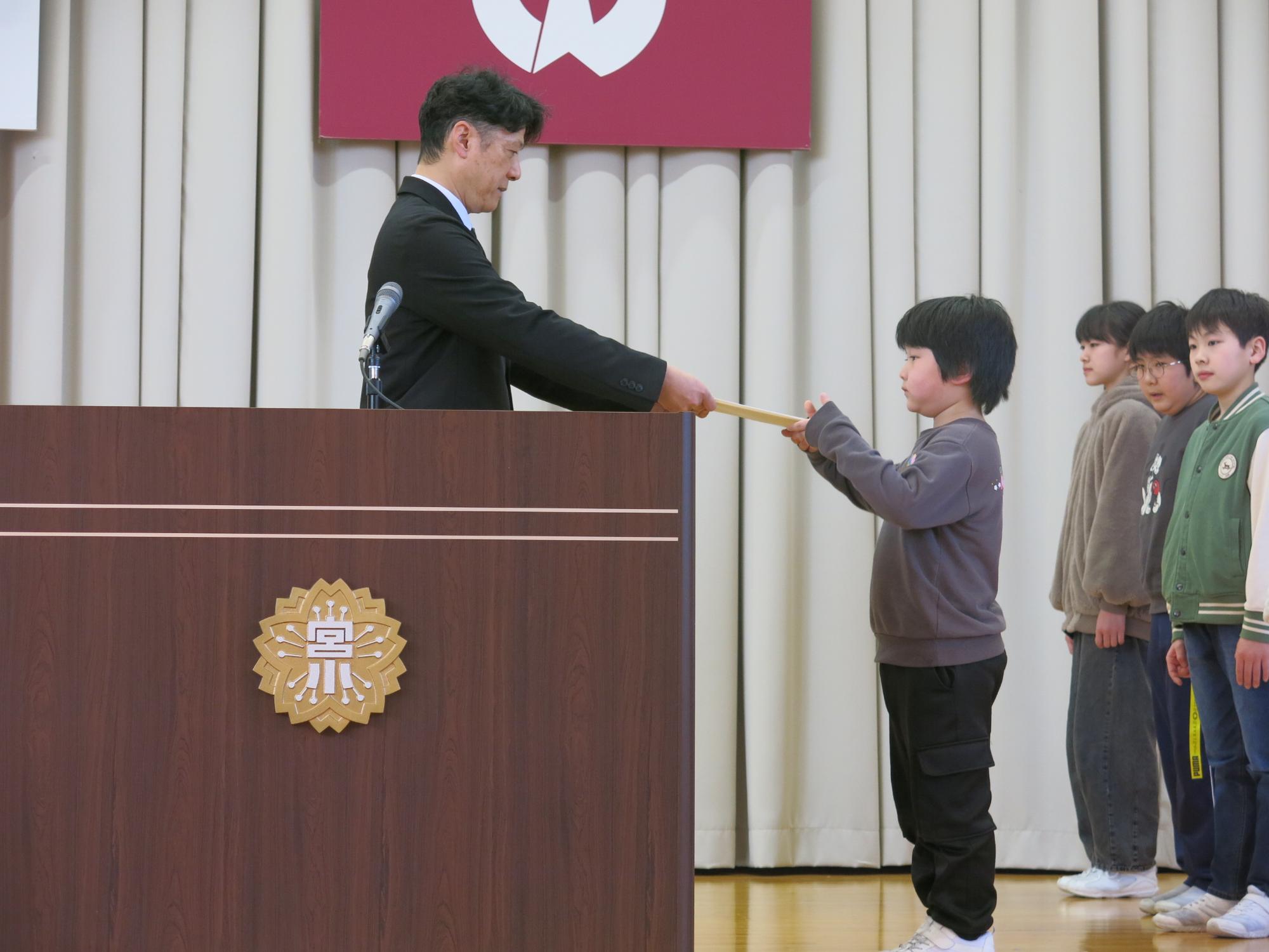 本日、令和7年度の修了式を行い、各学年の代表児童に修了証を渡しました。修了おめでとうございます。代表児童の1年生と6年生から、3学期、そして1年間を振り返って自分の頑張りや成長を発表してくれました。そして、明日はいよいよ卒業式。卒業生だけでなく、在校生も、この1年の成長を発揮する場です。式に臨む態度、一つ一つの行動、歌や呼びかけ……どんな姿で臨むのか、「自分で考えて、自分で決めて、そして行動で」見せてくれることを期待しています。