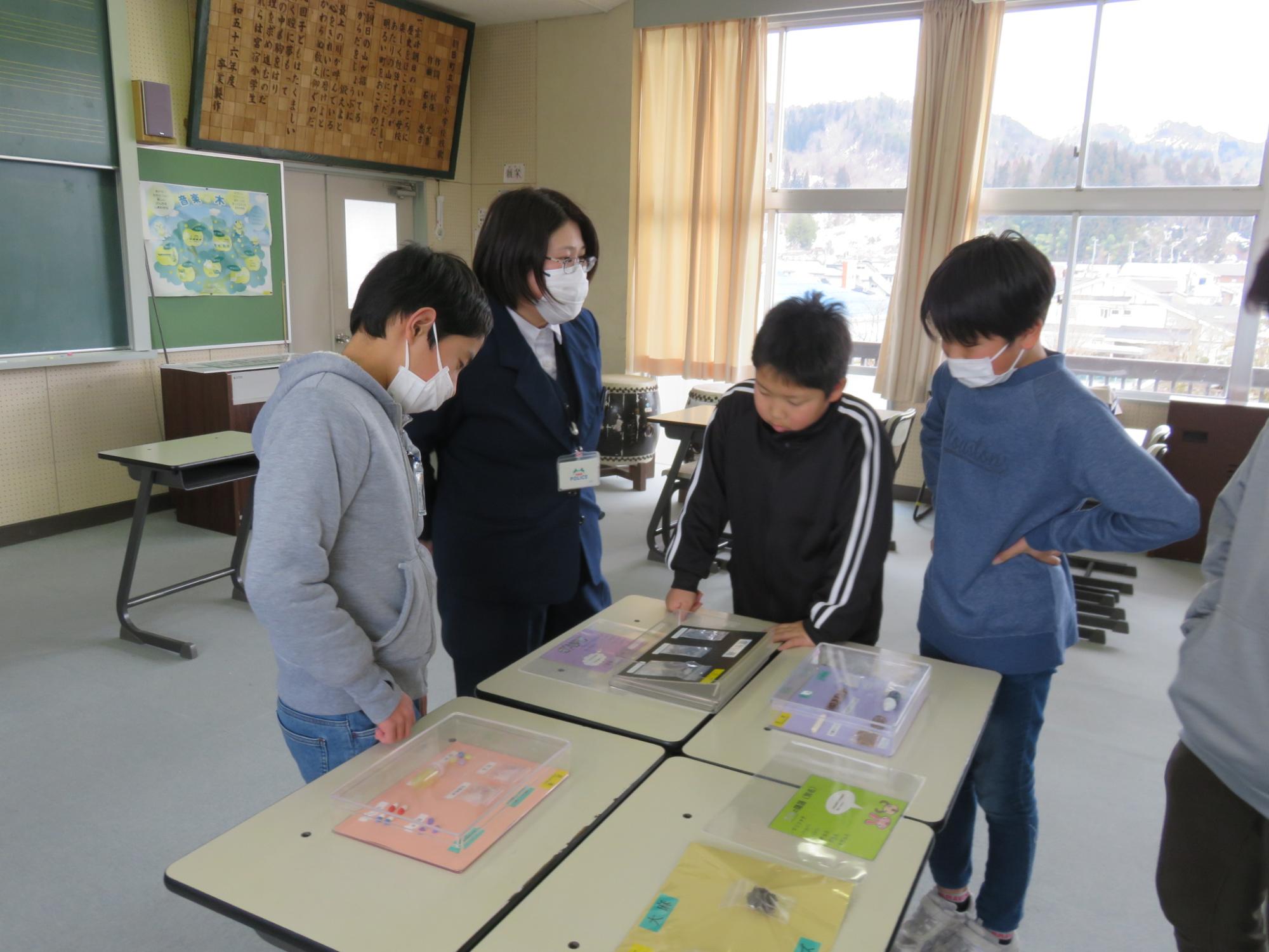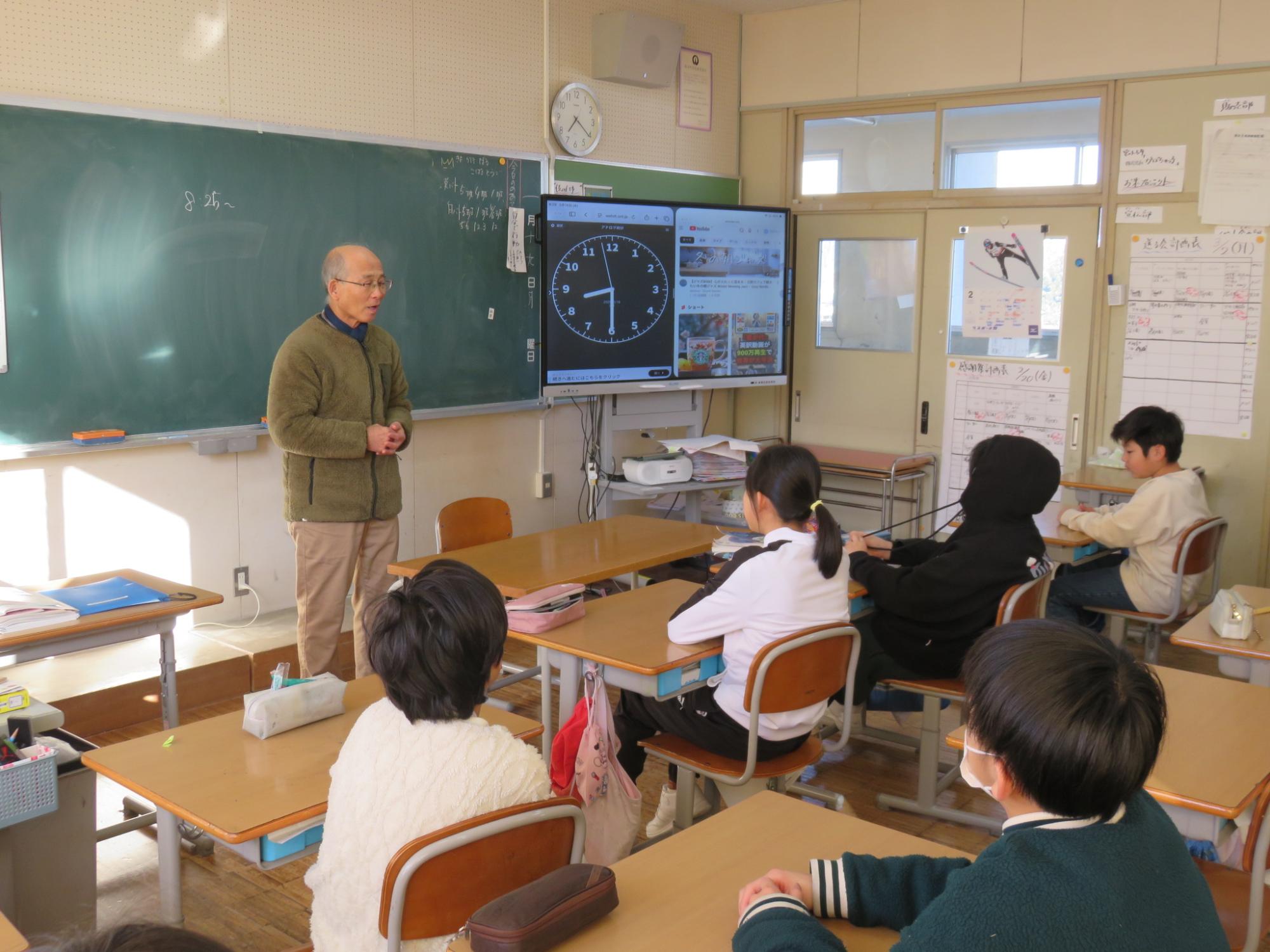 4年生は水の学習で、朝日町町史編さん業務員の齋藤さんを講師にお招きし、朝日町の堰の歴史を学びました。