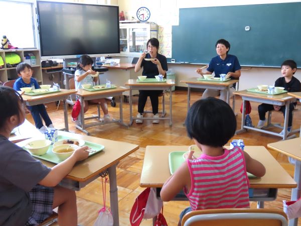 朝日町の3つの小学校の、6年生合同修学旅行が、9月25~26日に予定されています。そこで、宮宿小学校に、西五百川小・大谷小の6年児童が集まり、合同学習会を行いました。コースや日程について確かめた後、ジュリー先生から英語のレッスンを受けました。