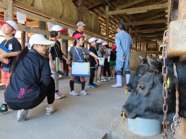 1・2年生が、生活科の学習で牛舎を見学してきました。