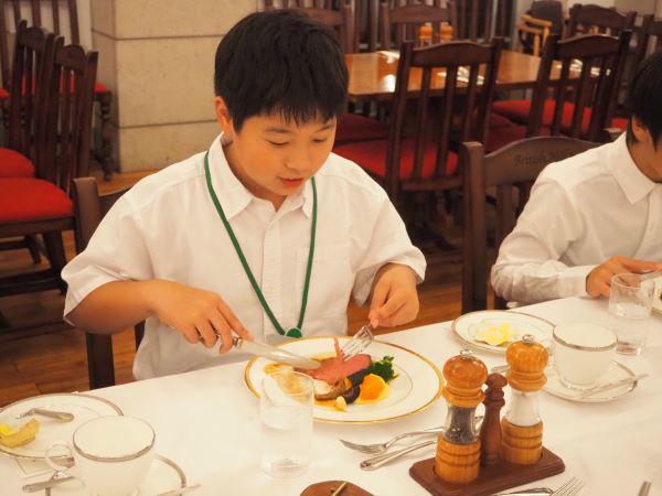 英語でのレッスンやディナーのマナー講座を体験しながら、日頃学んでいる英語を役立てていました。