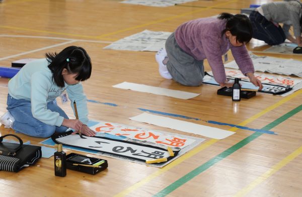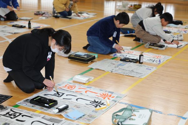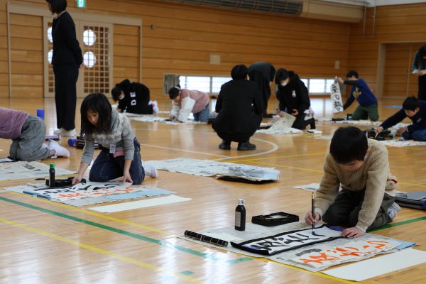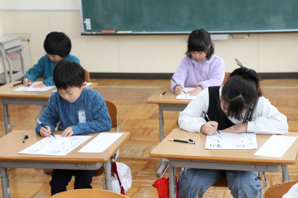 そのあとそして、子どもたちは、冬休み中にも練習してきた成果を発揮しようと、真剣な表情で書きました。もっと字が上達するようにと、心をこめて書き上げました。