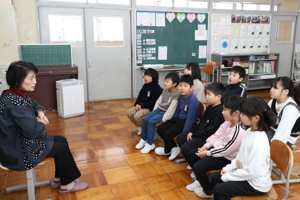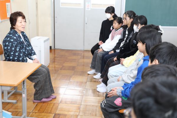 語りの会「つむぎ」から3名の方においでいただきました。1・2年生は阿部さんから「しっぽの釣り」の話を聞きました。3・4年生は、吉村さんから八ツ沼に伝わる「黄金沼」の話を聞きました。5・6年生は鈴木さんから「、なんばこ屋とまんじゅう屋」のお話をお聞きしました。この話の舞台は「猿田超え(大谷から大江町堂屋敷へ続く道)」です。