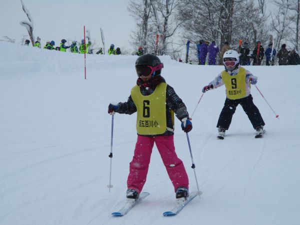 先週からの大寒波で、積雪にも恵まれ、ふわふわの雪で、絶好のコンディションとなりました。4人の保護者の方にも指導者を引き受けていただき、3人のスキースクールのインストラクターの方にも丁寧に指導していただきました。ありがとうございました。もともと、西五百川小の子どもはスキーが上手なのですが、ますます上手になりました。