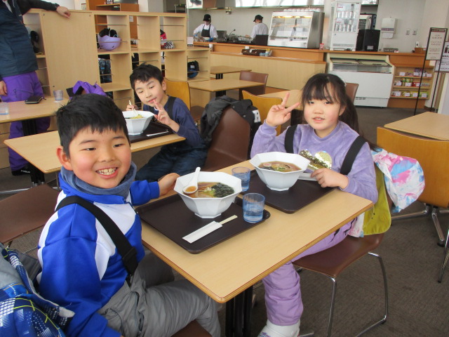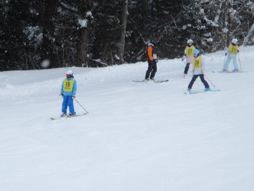 前日からの降雪で、たっぷりの雪となりました。天候も、午前中は晴れ間も見え、風はなく、この季節らしい天気のもと、たっぷりとスキーを楽しむことができました。1年生から4年生までは、ポールをセットして、記録会を行いました。学年が上がるにつれて、スキー操作が上手になるのがわかります。全員が最後まで滑り切りました。