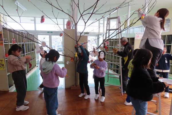 小正月の行事「だんごさし」を、1・2年生の生活科の学習で行いました。