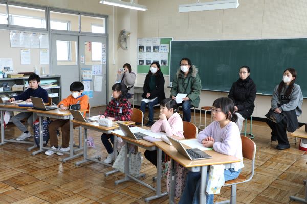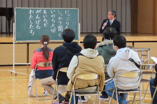 1・2年生は国語「いいこといっぱい、一年生・二年生をふりかえって」の発表と体育でした。3・4年生は総合的な学習の時間「自分たちにできることを考えて伝えよう(防災の学習)」の発表でした。5・6年生は道徳で「55年目の恩返し」の学習でした。