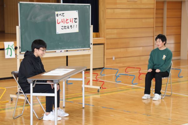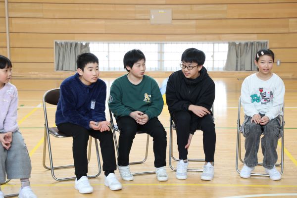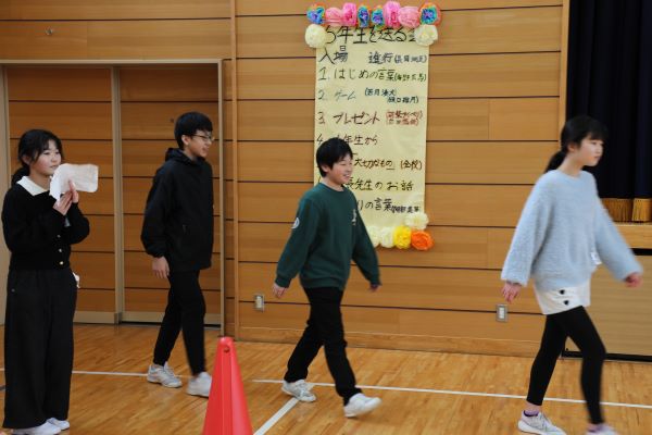 まずは、全校生が2チームに分かれてのリレーや、フルーツバスケットのゲームを楽しみました。それから、下級生から6年生へのプレゼントがありました。その後、2人の6年生からのコント「入学試験面接」がありました。2人の絶妙な掛け合いで、見ている下級生には笑いがあふれていました。最後に全校合唱「大切なもの」で会を締めくくりました。全校生が楽しく過ごした時間は、あっという間でした。