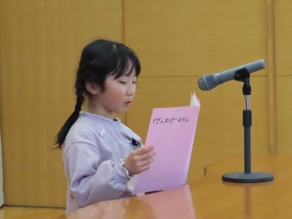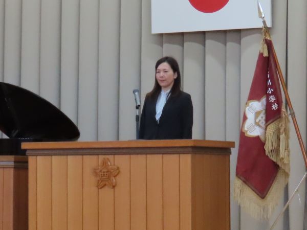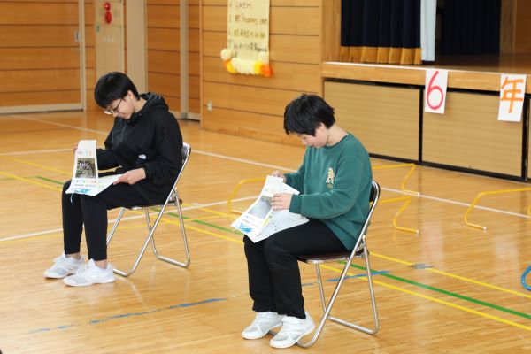 その後、1年生と6年生の学年代表の児童が、この1年間のがんばりを発表しました。明日は、卒業証書授与式です。