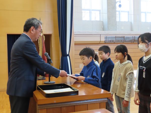 児童の進級・卒業を認める修了式を行いました。各学年の代表児童に、それぞれの学年の教育課程を修了した修了証を手渡しました。そして、校長から、季節にちなんだ話として、「春彼岸」について話をしました。「家族や地域の方に、そしてご先祖様にも、感謝の気持ちを大切にしよう。ふるさとを見守る朝日連峰、ふるさとを流れる最上川にように、大きく、たくましく成長してほしい」と伝えました。