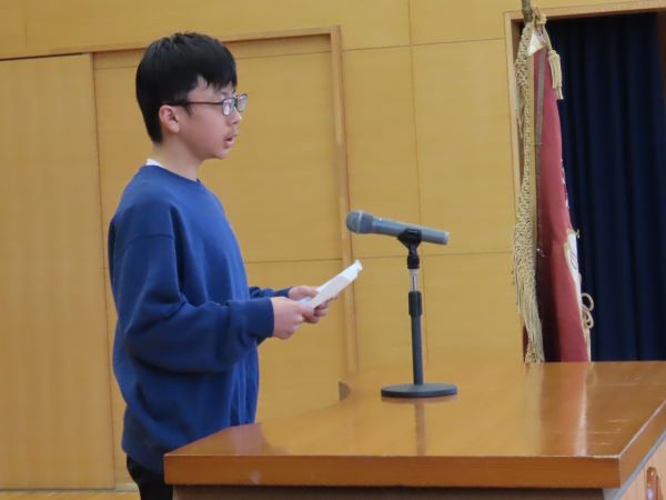 呼びかけや合唱では、自分の思いをこめ、呼びかけを言い、歌を歌いました。心温まる式になりました。