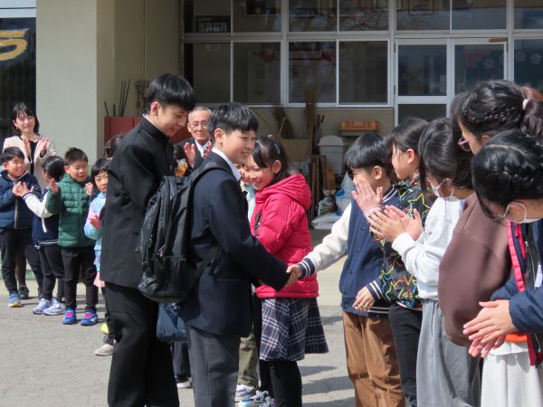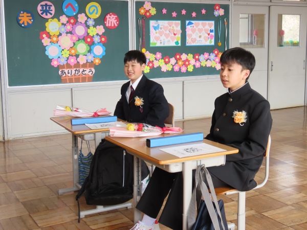 卒業式までの、残りの登校日数が10日となりました。二人の6年生の卒業を祝い、これまでの感謝の気持ちを伝えようと、6年生を送る会を行いました。