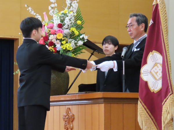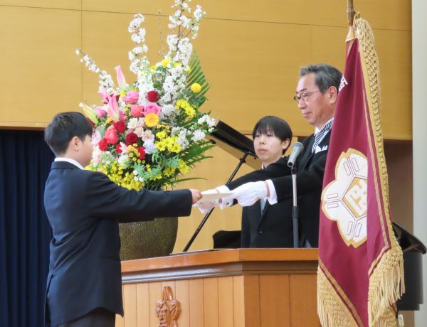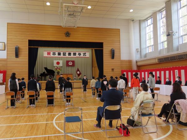温かな日差しがさす本日、令和7年度卒業証書授与式が執り行われました。2人の卒業生に卒業証書が手渡されました。二人は、少し緊張しながらも、誇らしげな表情で証書を受け取りました。