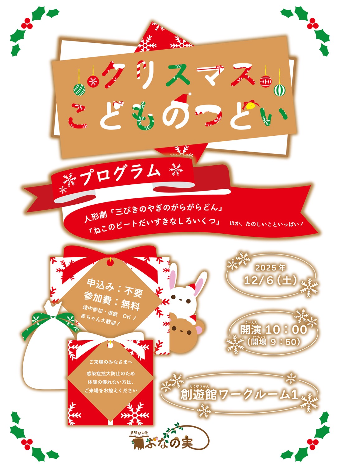 令和7年12月6日(土曜日)午前10時~ クリスマスこどものつどい