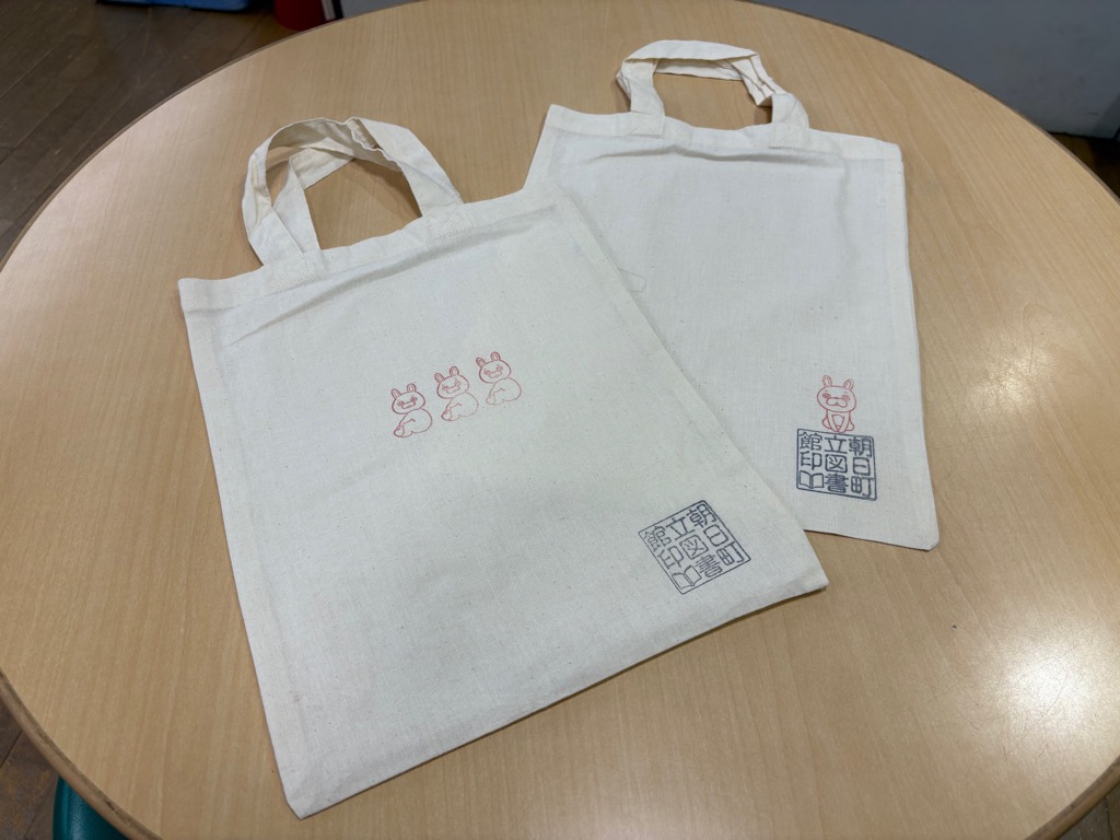 町立図書館で発行する「読書手帳」1冊(本15冊貸出)を達成した方に、町立図書館オリジナル桃色ウサヒエコバッグをプレゼントします。