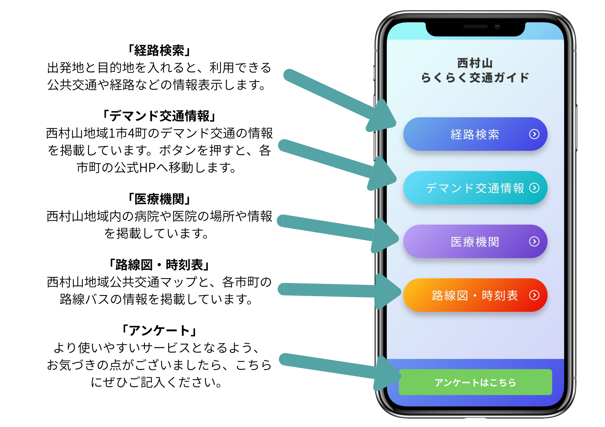 西村山地域公共交通マップが、「西村山らくらく交通ガイド」として、スマホ上でも利用可能なウェブサイトとなりました。