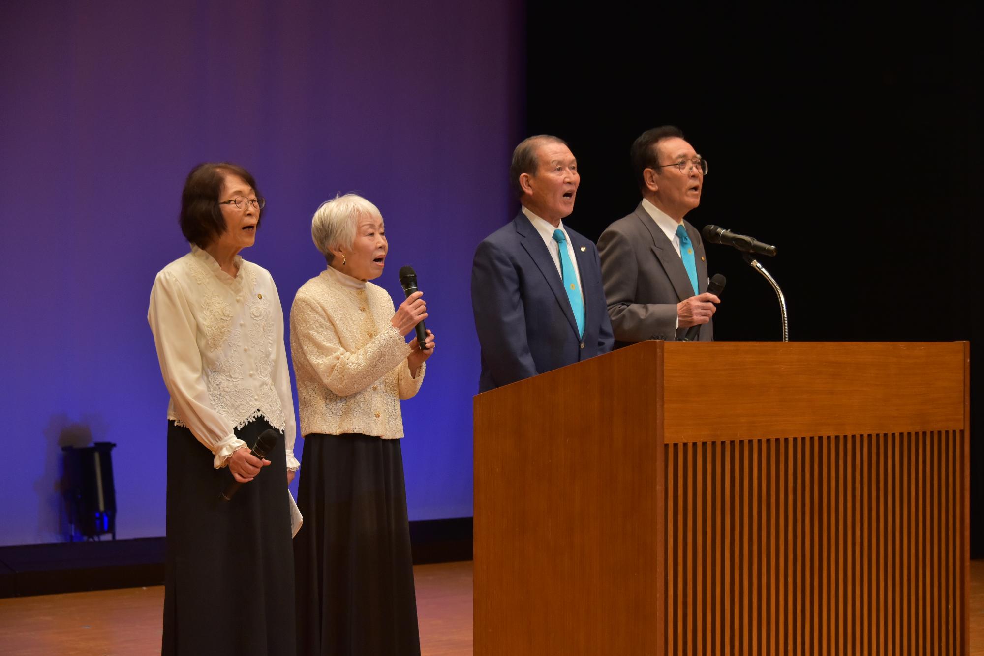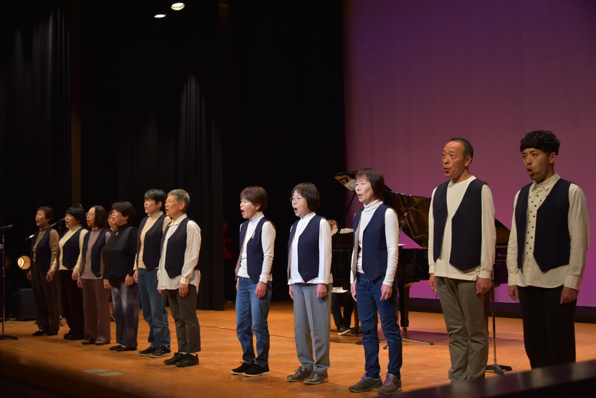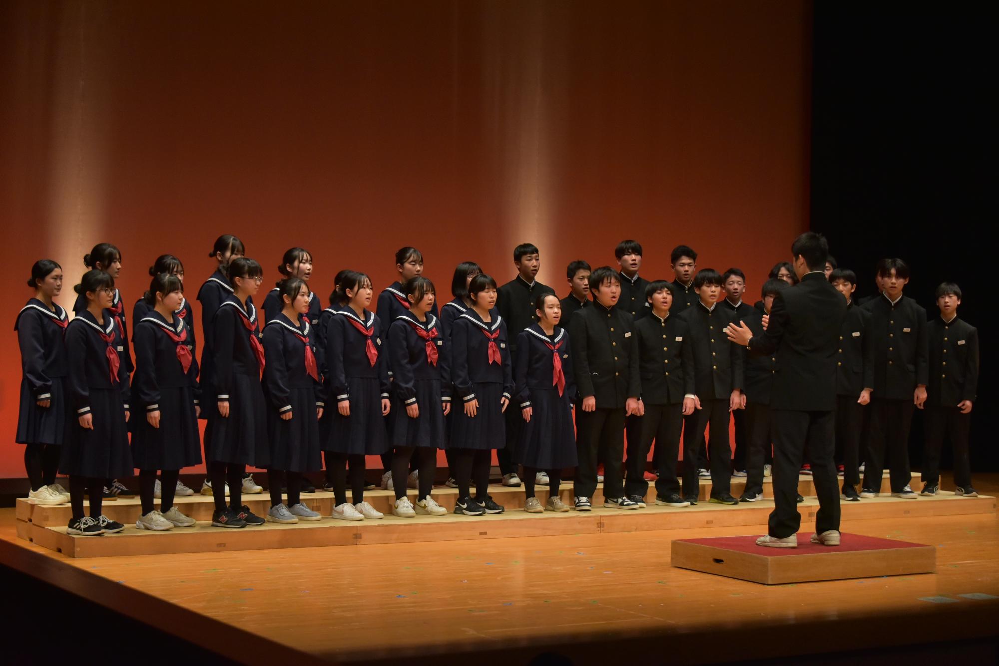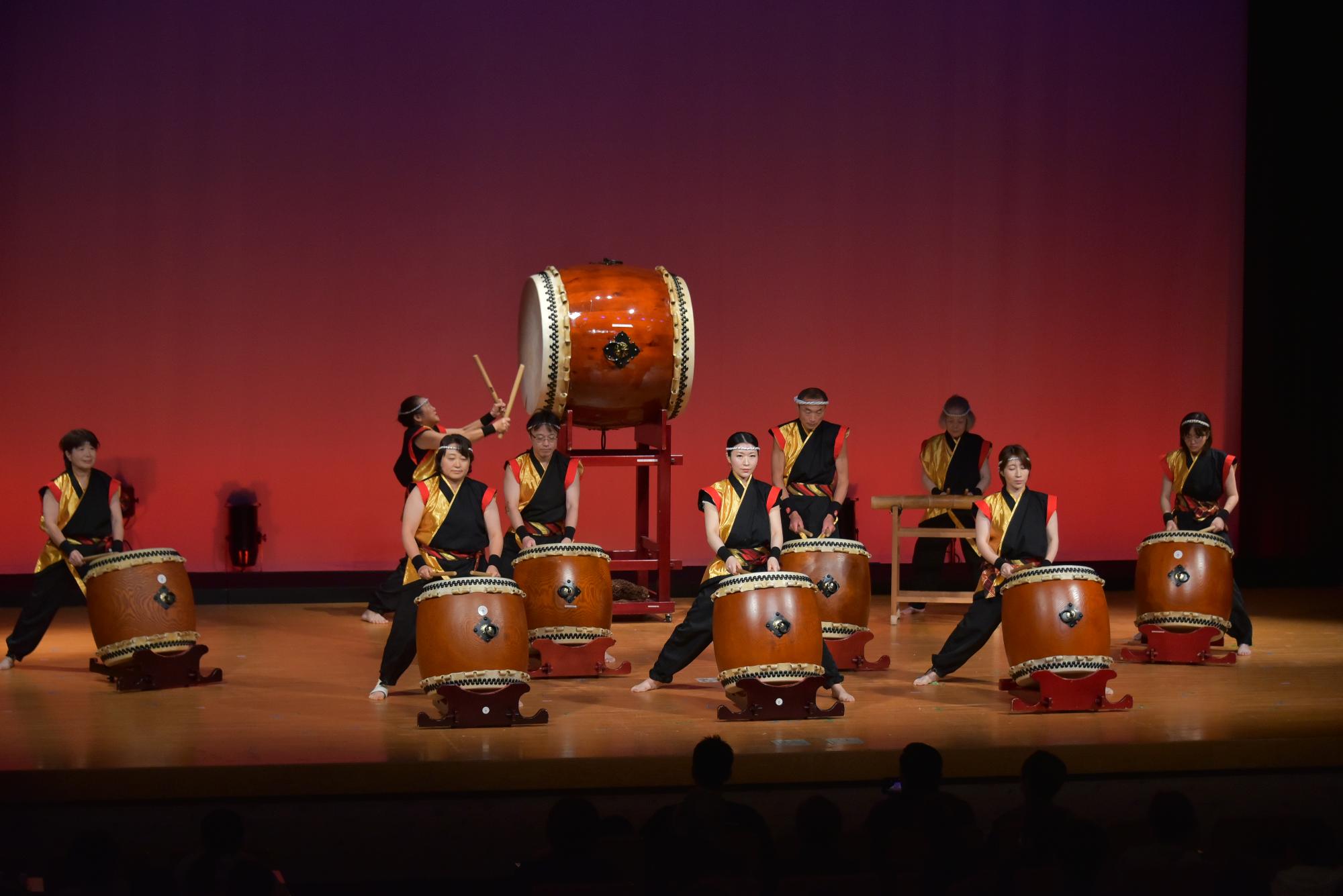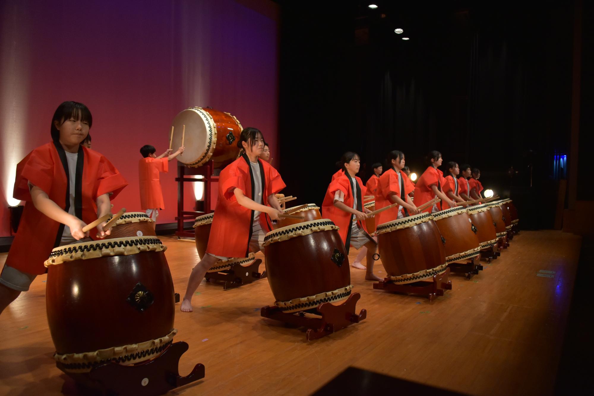 午後からの発表は朝日中生の太鼓の演奏でスタート。続いてお囃子や日本舞踊、吟道が発表され朝日中全校生徒による合唱で幕を閉じました。