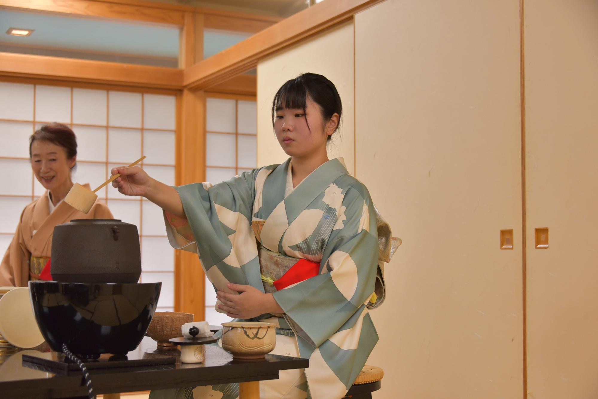 創遊館と西部・北部公民館には花や書、絵などが展示されたほか、茶室も設けられ来場者もほっと一息ついていました。