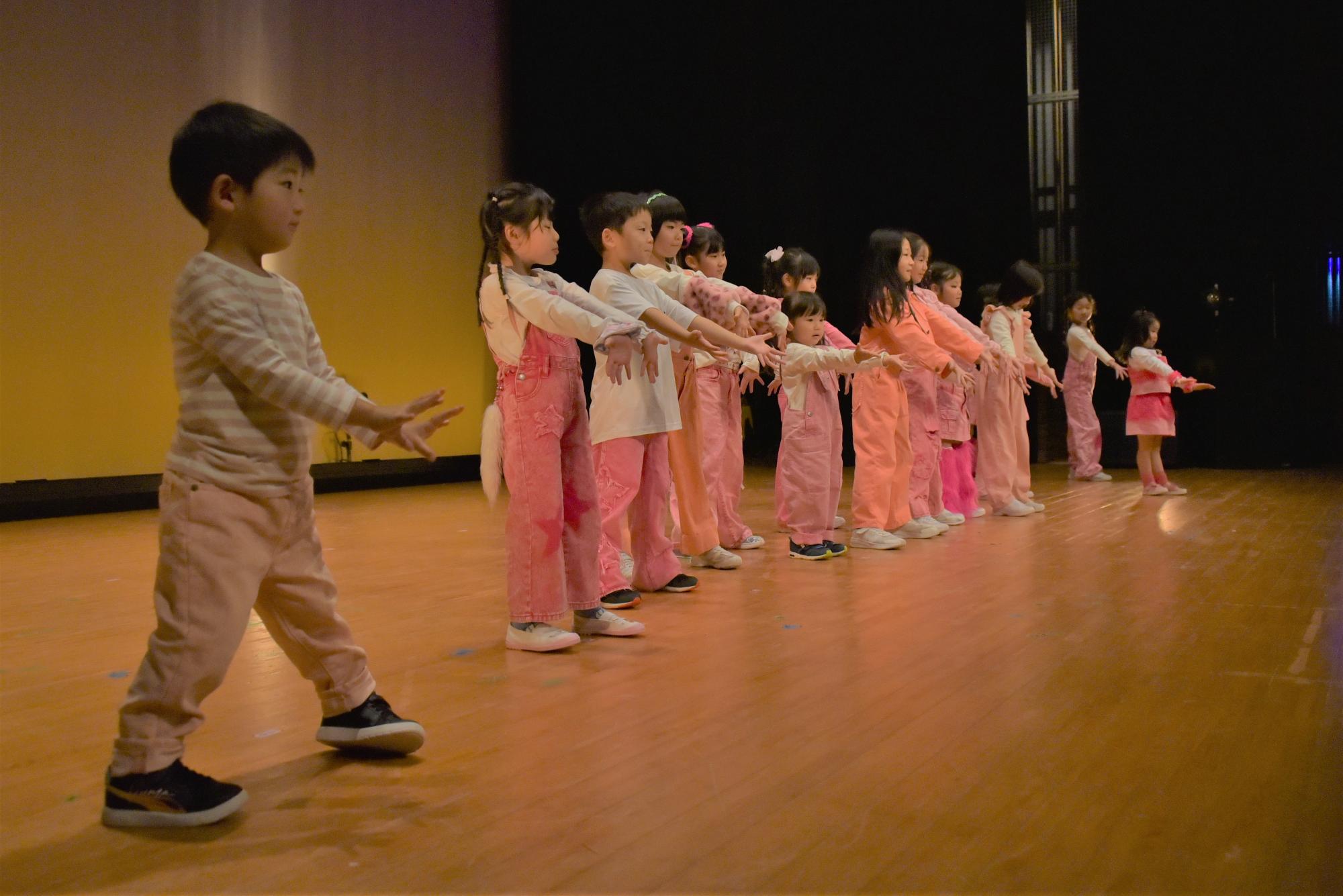 キッズダンス教室に通う子どもたちの可愛らしいダンスで始まった3日の芸能発表会。その後、歌や小学生の発表、ピアノ、民話、中学生による演劇が披露されました。