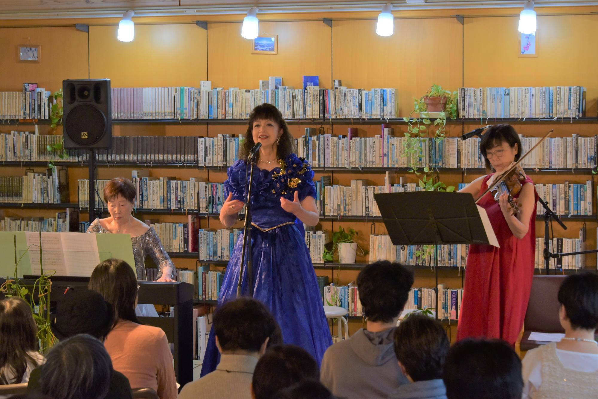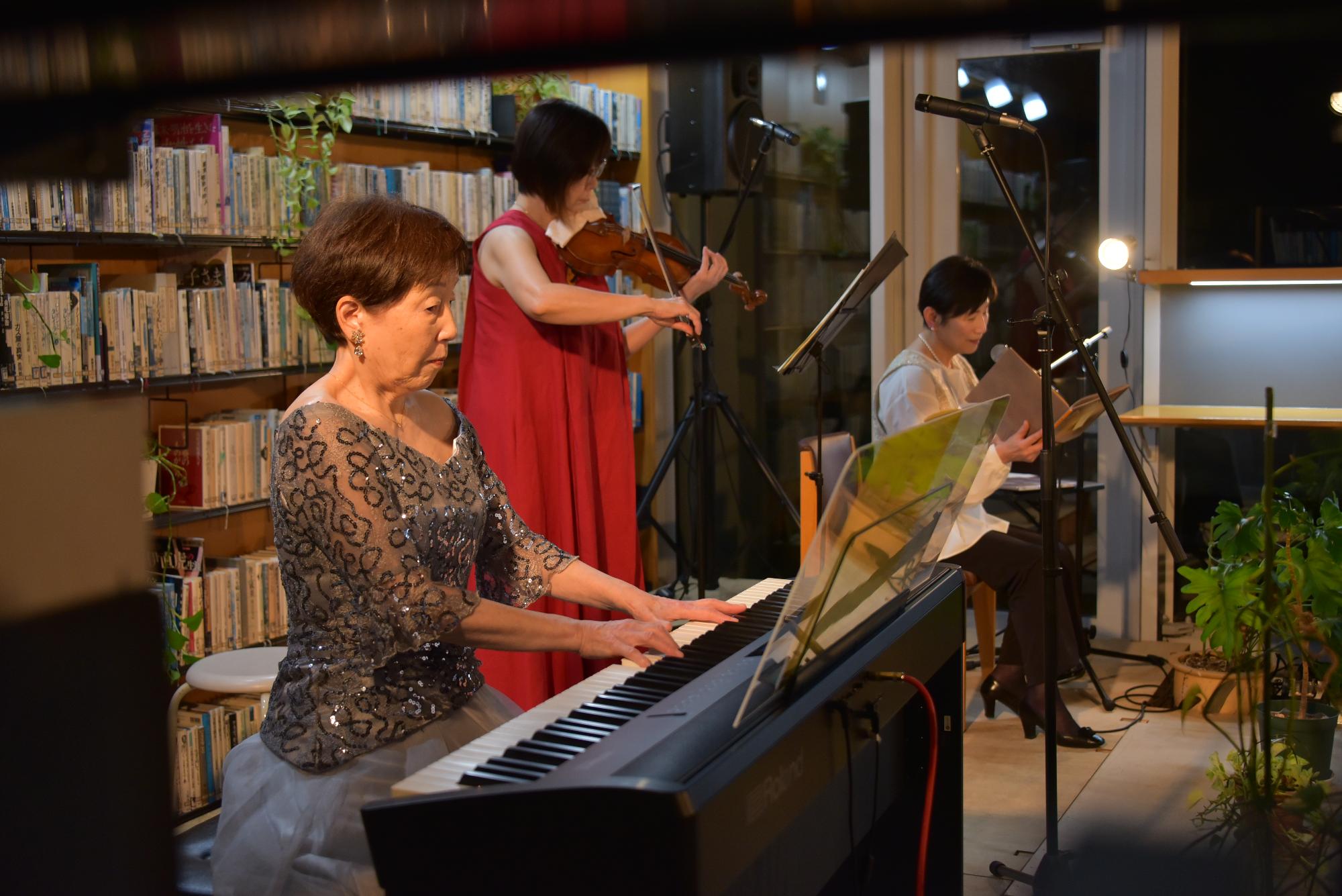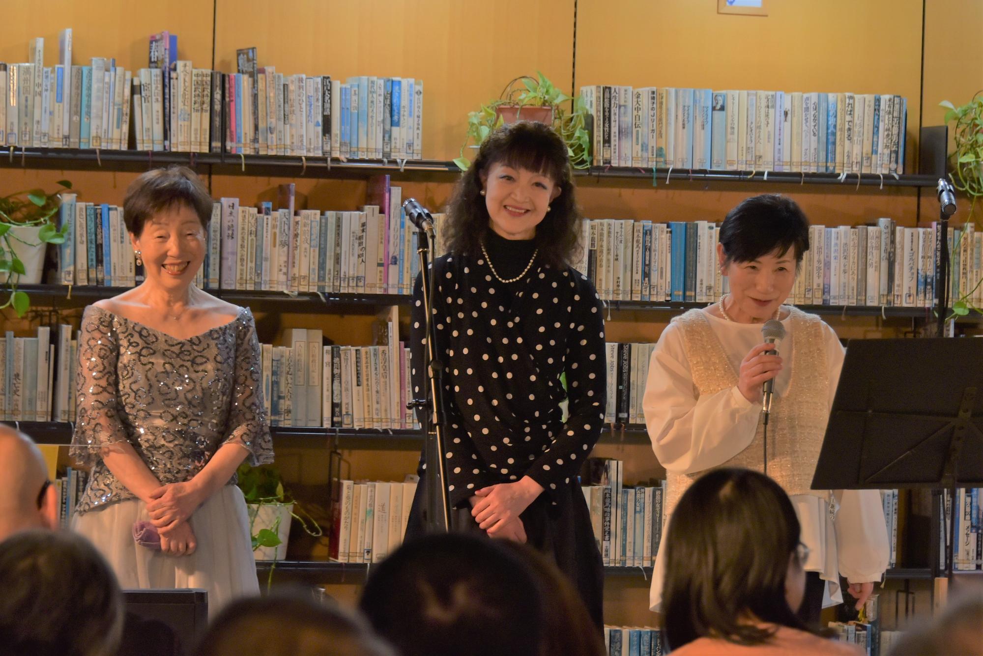 左から田中ふみ子さん(ピアノ)、大類雅子さん(歌)、板垣幸江さん(朗読)