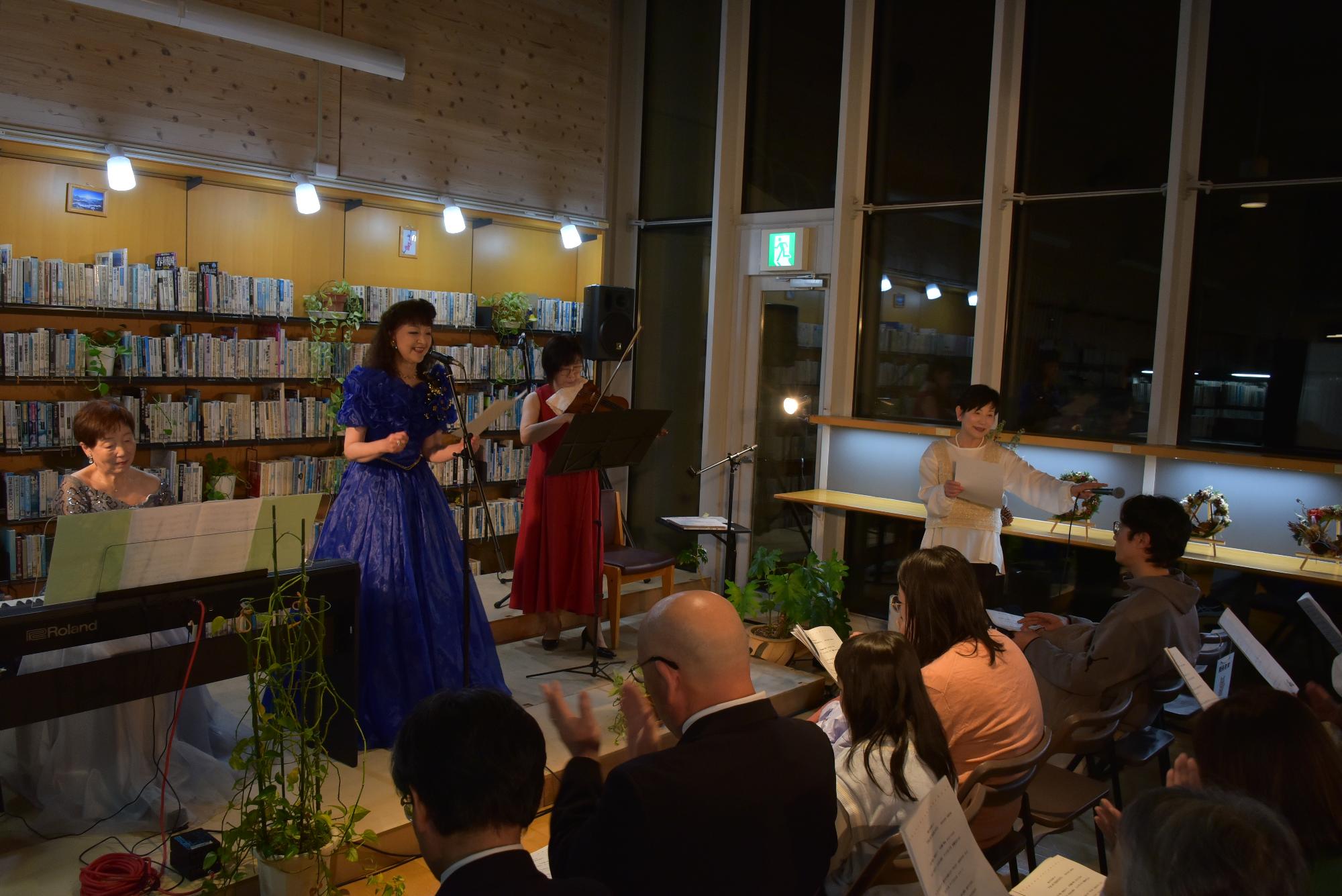 4人の出演者は、開催テーマ沿った絵本「てぶくろをかいに(新美南吉 作)」の朗読や「愛の挨拶(エルガー 作曲)」をはじめとする楽曲を披露しました。