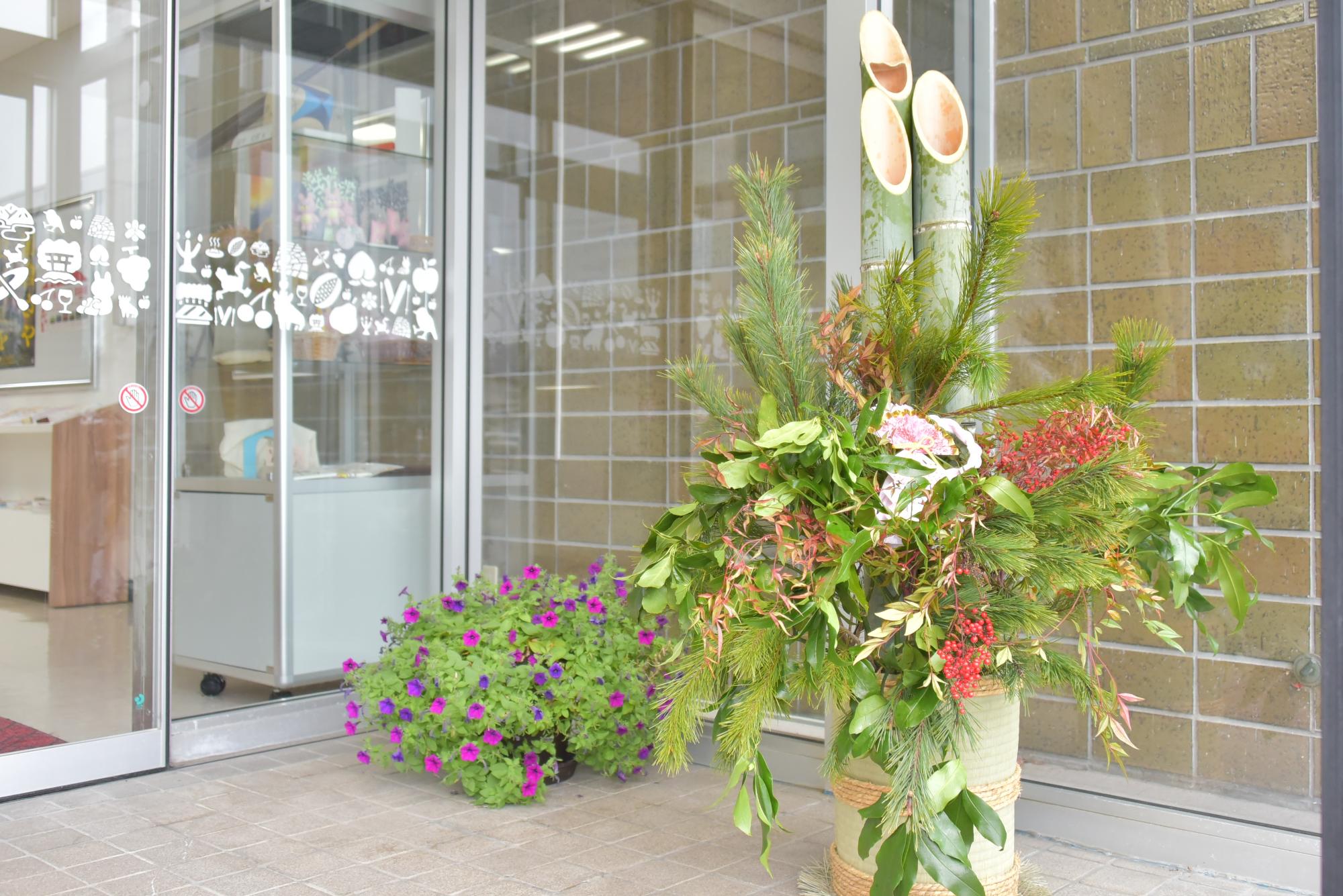門松は1月10日ごろまでの間、朝日町役場正面玄関に設置されています。ご来庁の際はぜひご覧ください。