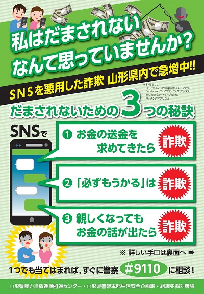 不審な連絡や広告には安易に応じず、少しでも違和感を覚えたら家族や警察(#9110)へご相談ください。