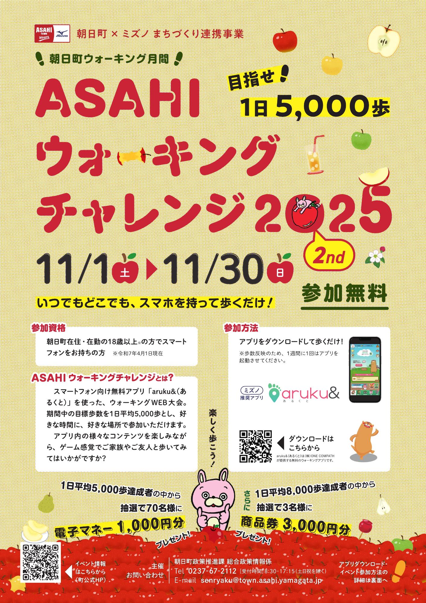 朝日町ウォーキング月間「ASAHIウォーキングチャレンジ 2025 2nd」を開催します!